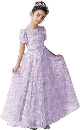 dideyttawl Flower Girls Dress A-Line Floral Junior Bridesmaid 3D Embroidery Lace Appliqued Dress 754