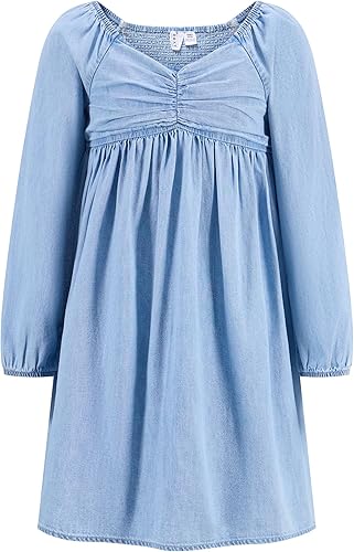 Roxy Girls Lightweight Denim Long Sleeve Dress, Stylish & Comfortable, Casual Fit