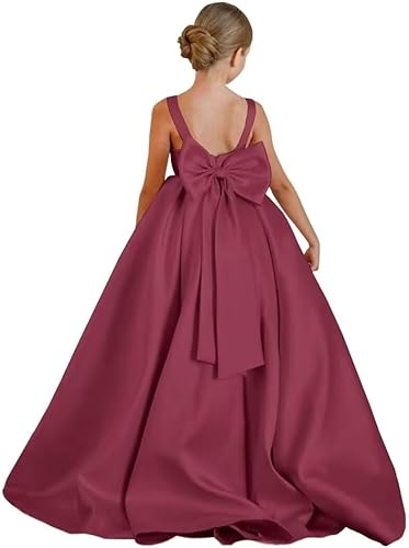 Round Neck Flower Girl Dress Satin 2025 First Communion Dress Pageant Ball Gown with Bow