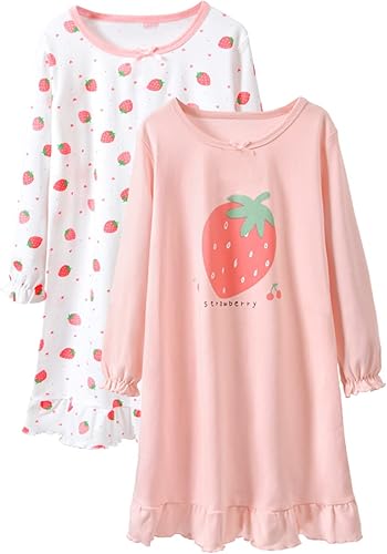 BANGSAUR Girls' Dress Cotton Homewear, Princess 2-Pack Dresses 3-12 Years