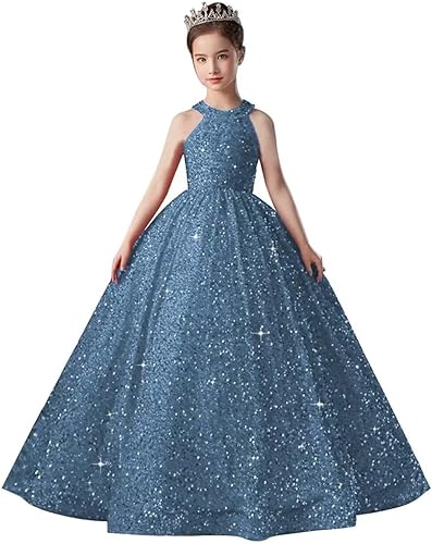 Molisa High Neck Sequin Flower Girl Dresses for Wedding Ruffle Pageant Dress Princess Kids Party Dress