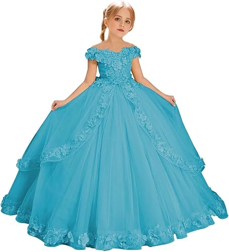 Off Shoulder Flower Girl Dress Floral Appliques Princess Pageant Dresses for Girls Tulle First Communion Dress