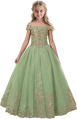 Flower Girl Dress Off Shoulder Pageant Dresses for Girls Tulle First Communion Dress Wedding Party Ball Gown