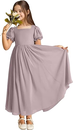 Square Neck Junior Bridesmaid Dress for Girls Chiffon Flower Girl Dress for Wedding Guest Party Gowns