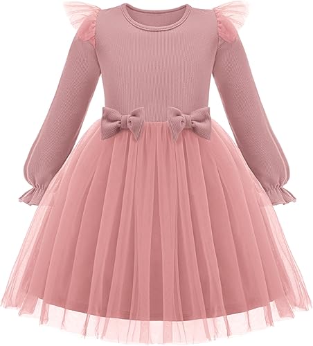 Arshiner Toddler Girls Tulle Dresses with Bow Tie Fall Winter Long Sleeve Formal Party Dress 1-7 Y