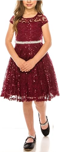 iGirlDress Cap Sleeve Floral Lace Glitter Pearl Holiday Party Flower Girl Dress Size4-14