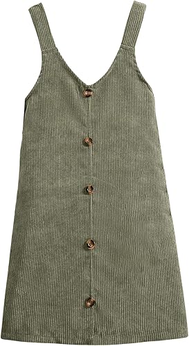 WDIRARA Girl's Button Front V Neck Overall Dress Sleeveless Corduroy Pinafore Dresses