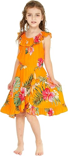 Girl Ruffle Wrap Hawaiian Luau Dress in Pretty Tropical Floral
