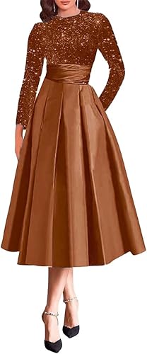Long Sleeve Mother of The Bride Dresses Satin Sequins Prom Dress for Women