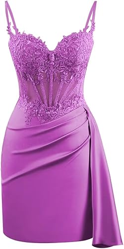 V Neck Satin Homecoming Dresses for Teens Lace Short Porm Dress Mermaid Pleated Bodycon Cocktail Dress