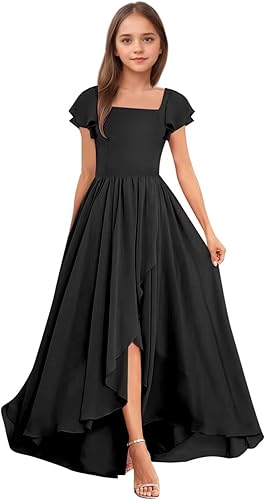 BOLENSYE Junior Bridesmaid Dresses for Wedding Short Sleeve Square Neck Flower Girl Dresses for Teens Gilrs 7-16