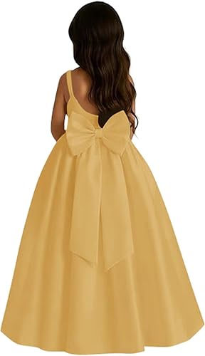 Satin Flower Girl Dress for Wedding Spaghetti Strap Backless Princess Ball Gown First Communion Dress with Bow