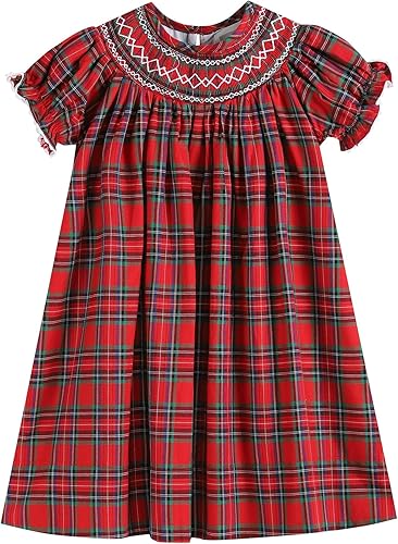 Made in USA Toddler Christmas Dresses for Girls, Red Plaid Dress for Baby Girl, Holiday Outfit, Vestidos Niñas