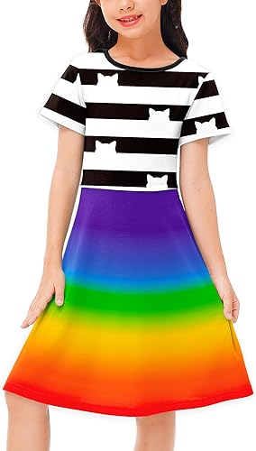 GORLYA Girls Vintage Collar Casual Loose Straight Swing T-Shirt Dress with Pockets 4-14Y