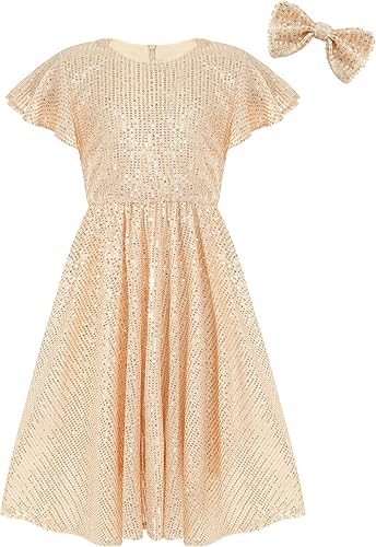 EXARUS Girls Sparkly Dresses Ruffle Sleeve Glitter Sequin Crew Neck A-Line/Bodycon/Tunic Dress for Girl 6-14Y