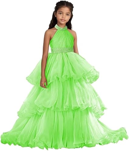 LTW Tiered Pageant Dresses for Girls Birthday Ball Gown with Rhinestones Organza Flower Girl Dress
