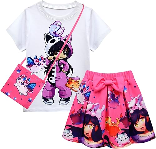 Fashion 3D Printing Game Character Short -Sleeved Shirt Dress 3 PCS Set