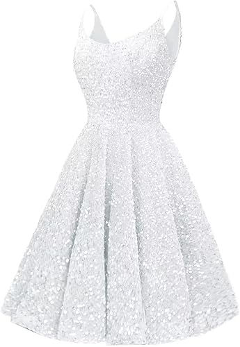 Changuan Sequin Homecoming Dresses for Teens 2025 Sparkly Spaghetti Strap A-line Short Prom Dress Cocktail Formal Party Gowns