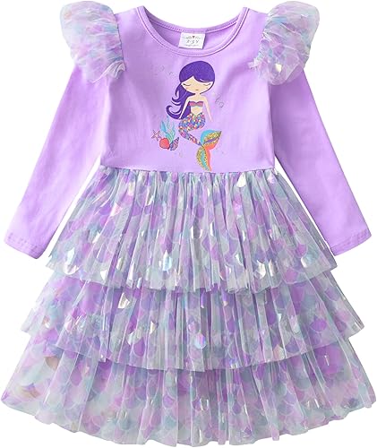 VIKITA Girls Dresses Winter Long Sleeve Birthday Party Tutu Dresses for Girls 3-12 Years