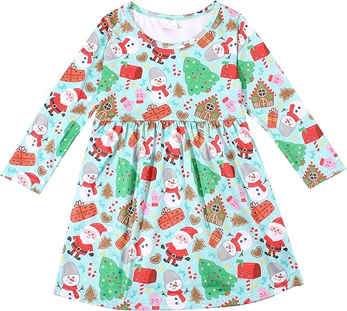 Thin Fall Dress for Girls Casual Cute Long Sleeve Swing Skater Dress Funny Print Party Outfits