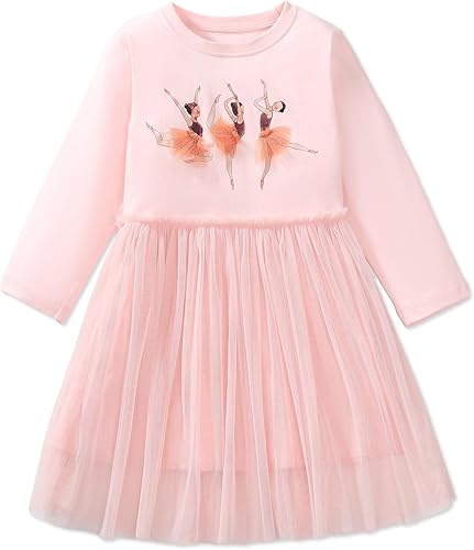 Girls Dresses for Winter Long Sleeve Toddler Girls Clothes Party Tulle Cotton Casual Dresses