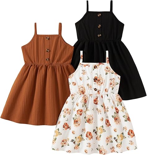 Girls Dresses Toddler Girls Dress 3-Pack Casual Party Print Skater A-line Dress Sundress