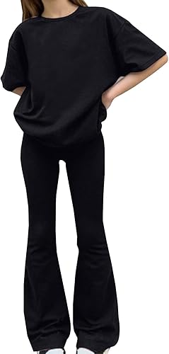Girls' Clothing Sets Drop Shoulder T-Shirt and Bell Bottom Pants 2 Pieces Cute 2025 Spring Outfits Sweatsuits School Uniform