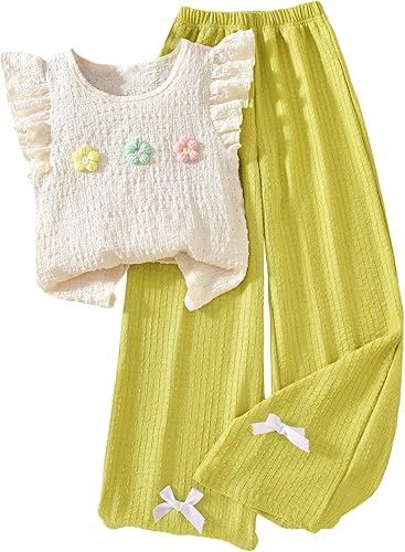 Floerns Girl's Kids Clothes 2 Piece Outfit Summer Camisole Tropical Long Pants Set