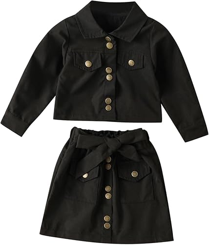 Toddler Girls Long Sleeve Jacket Skirts Outfits Button Solid Color Lapel Shirt Bowknot Skirt Kids Girls Trendy Clothes