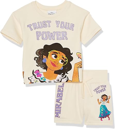 Disney Girls Encanto Mirabel French Terry - Tee & Short Set, Ivory, 6-6x US