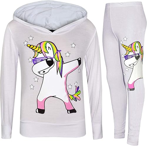 Kids Girls Rainbow Unicorn Dab Floss Hooded Top Legging Set Xmas Tracksuit 7-13Y