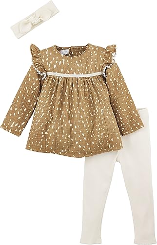 Mud Pie Fawn Gauze Tunic, Legging and Headband Set, Brown, 3 Toddler