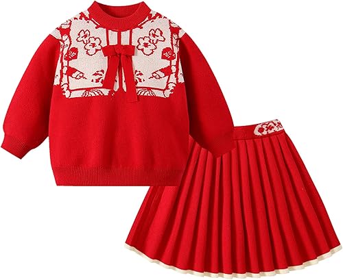 Cute Clothes for Girls Fall Winter Kids 2 Piece Outfits Sweater Plaid Skirt Tween Girls Clothing Dresses Set 8-12