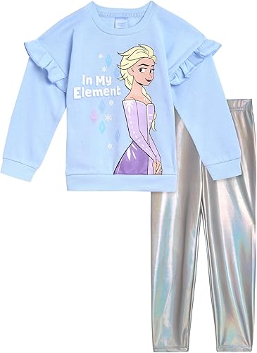 Disney Minnie Mouse Frozen Princess Girls Fleece Sweatshirt & Iridescent Leggings Set Toddler to Big Kid Sizes (2T - 14-16)