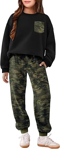 Arshiner Girls Clothes 2 Piece Fashion Fall Outfits Oversize Pullover Sweatshirt and Sweatpant Sweatsuit Sets with Pockets