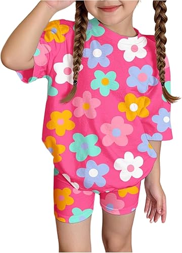 Floerns Toddler Girl's 2 Piece Cute Outfit Short Sleeve Floral T Shirts with Shorts Set