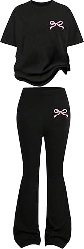 SOLY HUX Girl's 2 Piece Outfits Bow Graphic Long Sleeve Sweatshirt Tops and Flare Pants Cute Matching Sets