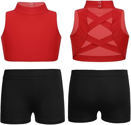 JanJean Kids Girls 2 Piece Ballet Jazz Active Dance Sports Outfit Top with Shorts Set for Gymnastics Leotard Dancewear