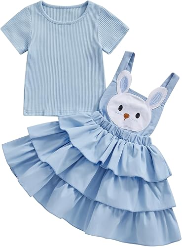 BeQeuewll Toddler Girl 4th of July Outfit Rib Shirt Ruffle Tutu Dress Kids Little Girls 4th of July Clothes18M 2T 3T 4T 5T 6Y