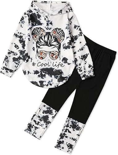 Girls Clothes Tie Dye Long Sleeve Hoodie Sweatshirt and Pants Sets Cute Girl Outfits Size 5-14 Years