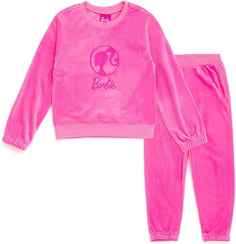 Barbie Girls Velour Sweatshirt and Jogger Pants Outfit Set Toddler to Big Kid Sizes (2T - 14-16)