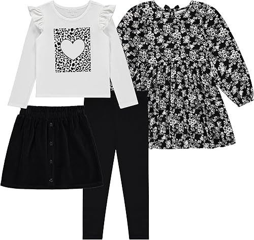 BTween Girls 4 Pack Fall Outfit Dress, Skirt, Tee, Leggings, Cotton Blend, Sizes 4-12