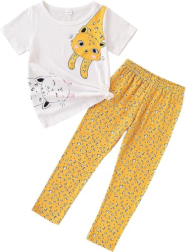 4-8T Toddler Girl Clothes Cat face print Short Sleeve Top+Pants Outfits Girl Spring and summer 2-Piece Set