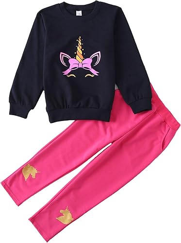 Girls Clothes Toddler Fall Outfits Long Sleeve Hoodie Sweatshirt Tops + Sweatpants 2 Pieces 2-7Y