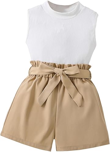Toddler Girl Summer 2-Piece Solid Color Vest + Casual Shorts Set