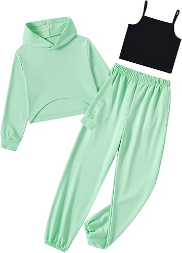 Girls 3 Piece Outfits Sweatsuit Long Sleeve Hoodie Sweatshirt and Sweatpant Kids Clothing Sets Size 5-12