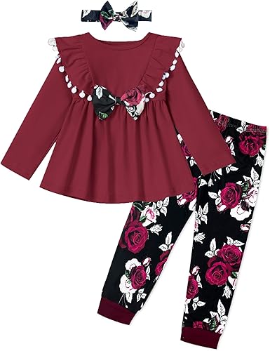 Toddler Girl Clothes Girl Fall Winter outfits Cotton Long Sleeves Ruffle Top Pants Little Girl Clothing Set
