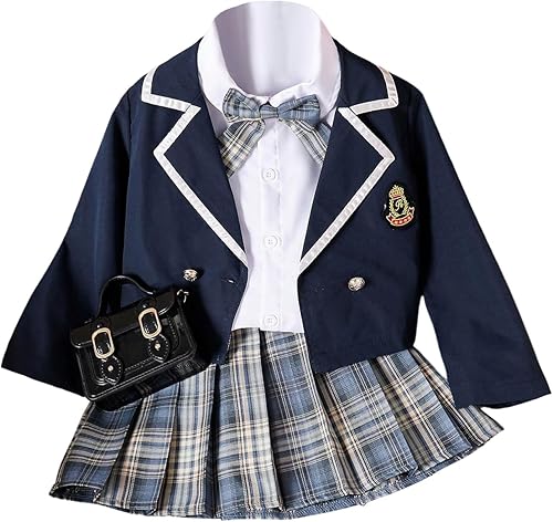 WDIRARA Girl's 3 Piece Outfits Uniform Blazer Plaid Pleated Mini Skirt Set with Bow Tie Preppy Outfits
