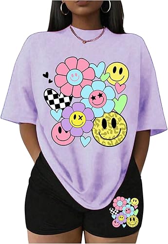 Floerns Girl's 2 Piece Outfit Graphic Crew Neck Short Sleeve Tee and Skinny Shorts Set
