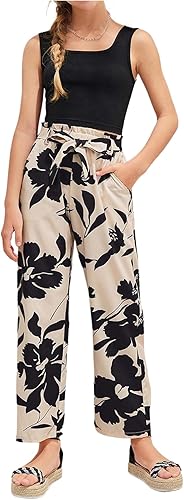 OYOANGLE Girl's 2 Piece Outfits Sleeveless Crop Tank Top and Floral Belted Pants Set